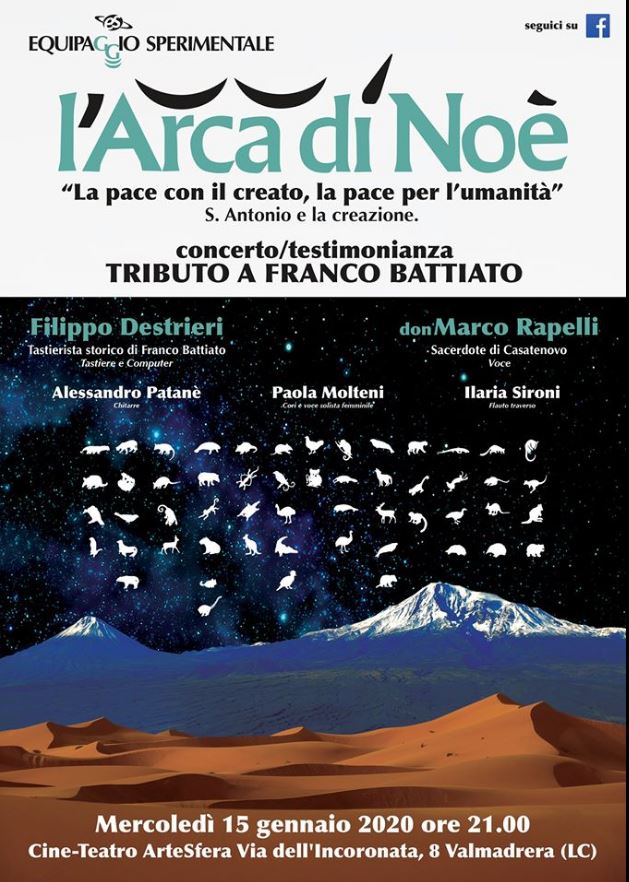 Un inedito concerto per l’Equipaggio, il primo senza la proiezione dei videoclip (per motivi tecnici organizzativi). Una meditazione in musica guidata dalla “Laudato sii” di Papa Francesco.